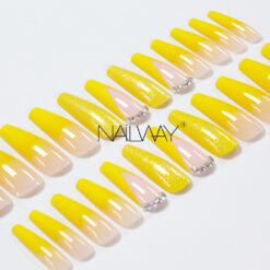 24pcs Full Cover Rhinestones Yellow Color Press On Nails Artificial Nails