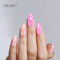 Nailway High End Barbi Pink Super Flexible Soft Gel/PMMA False Nails With Heart Design