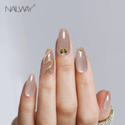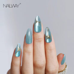 Nailway 30Pcs Handmade Reusable Cat Eye Gel Press On Nails With Foil Line Print