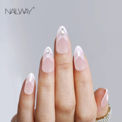 Nailway HIgh Quality Almond Shape French Design Gel Press On Nails With Diamond