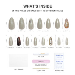 Nailway Instant Manicure Full Cover Long Lasting Time Colorful 30Pcs 15 Sizes Glitter Press On Nails False Nails