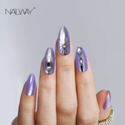 Nailway Purple Color Acrylic Cat Eye Press On Nails Shiny Stick On Nails