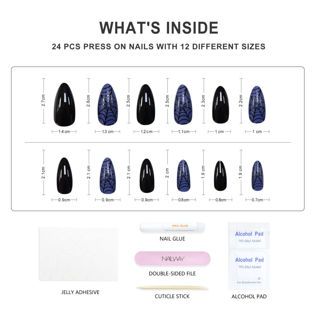 PackageIncluding:24pcs nails + 24pcs glue stickers/nail glue+alcohol pad+stick+nail file.