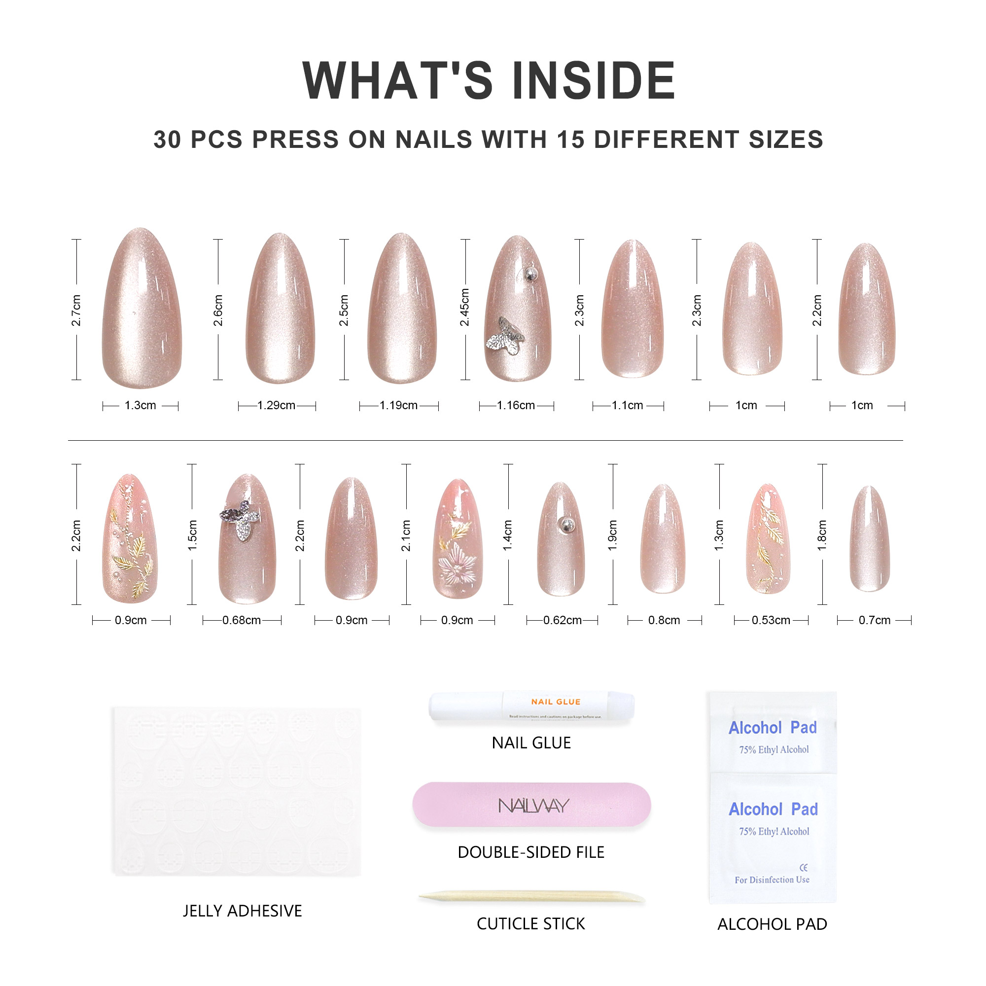 Product Name Soft Gel Press On Nails Product Type Press On Nails Material 100% Soft Gel/PMMA Brand Name Nailway OEM/ODM Acceptable Application Fake Nails Size 15Sizes 30PCs Shape Long Stiletto /Almond Package Including: 30pcs nails + 30pcs glue stickers/nail glue+alcohol pad+stick+nail file. Packed by Nailway box. Delivery Time 3-20days flexible delivery time Features Nails tip top very thick-Very durable!