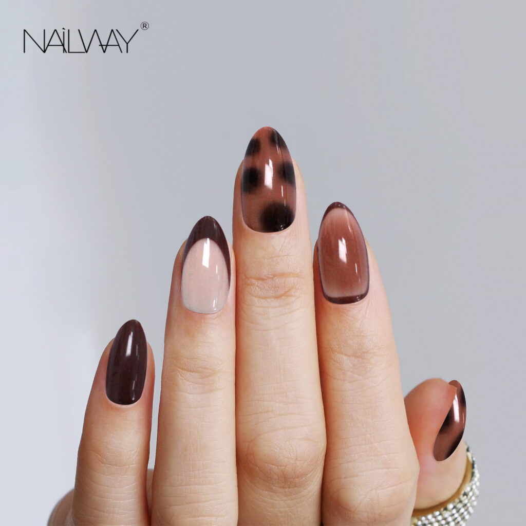 Hot Sale Autumn And Winter Collection Amber Color Leopard Print French Soft Gel Fake Nails