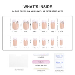 Product Name French Fake Nails Product Type Medium Square Press On Nails Material High Quality Korea ABS Material Brand Name Nailway OEM/ODM Acceptable Application Fake Nails Size 12Sizes 24Pcs Shape Medium Square Package Including:24pcs nails + 24pcs glue stickers/nail glue+alcohol pad+stick+nail file. Packed by Nailway box. Delivery Time 3-20days flexible delivery time Features Salon effect, Easy to wear, Removable, Perfect size fitting, 100% No damage to real nails