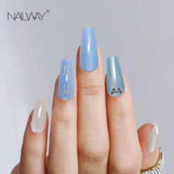 Nailway 30 Pcs 15 Sizes Long Coffin Shape Cat Eye Light Blue Gel Press On Nails - Image 4
