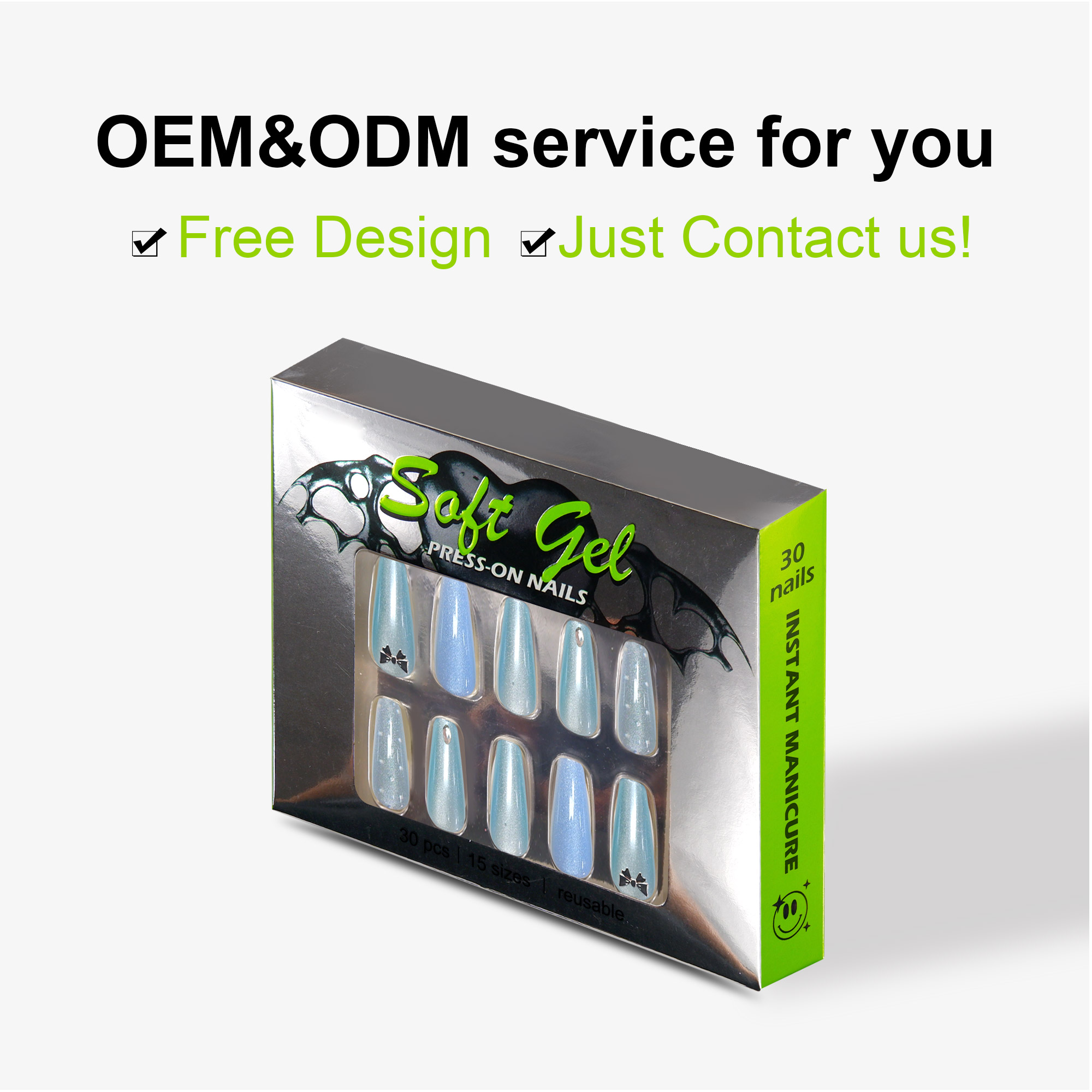 PackageIncluding: 30pcs nails + 30pcs glue stickers/nail glue+alcohol pad+stick+nail file.