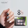 Nailway High End Black And White Color Glossy Soft Gel False Nails With Rhinestones