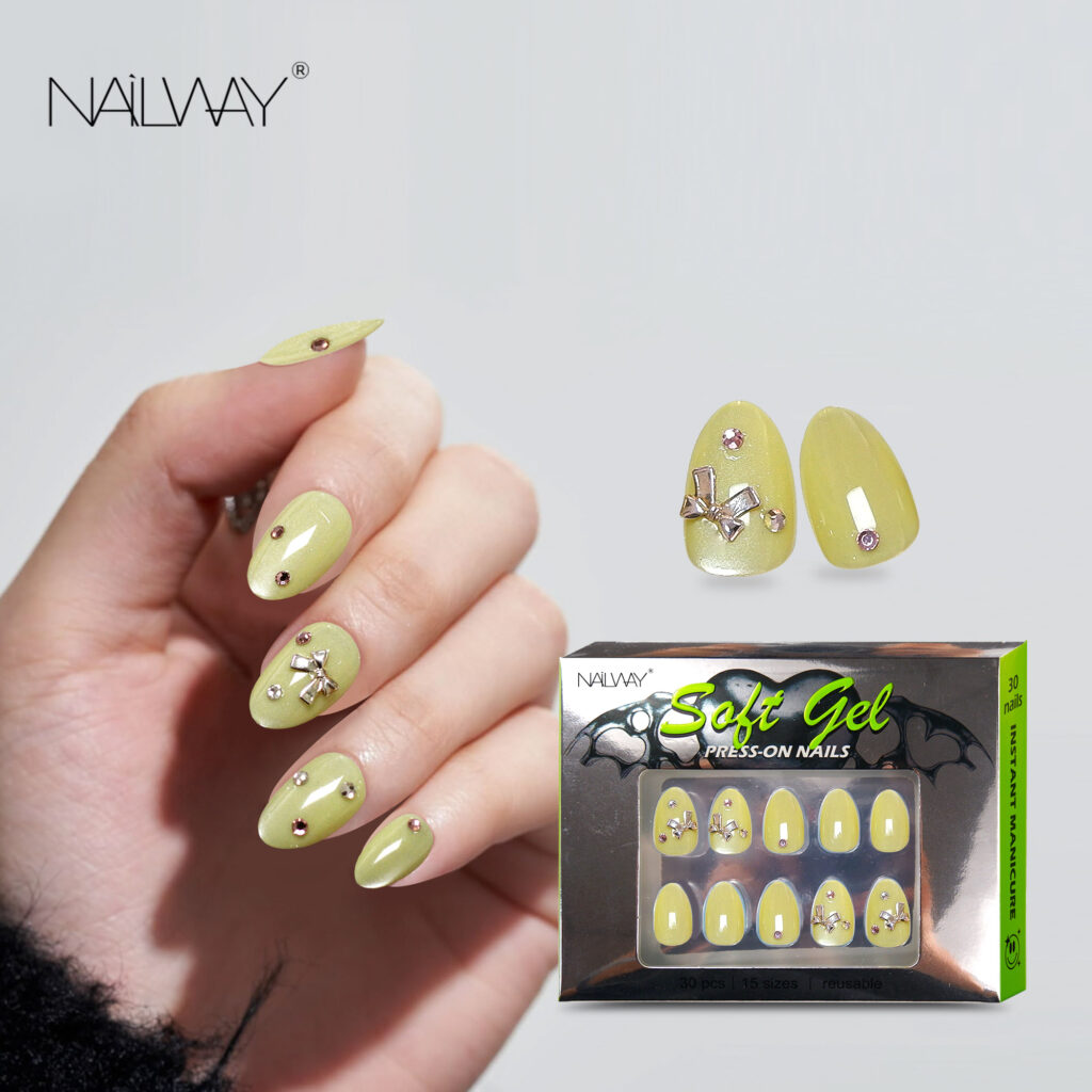 | Product Name | Soft Gel Press On Nails With Rhinestones |