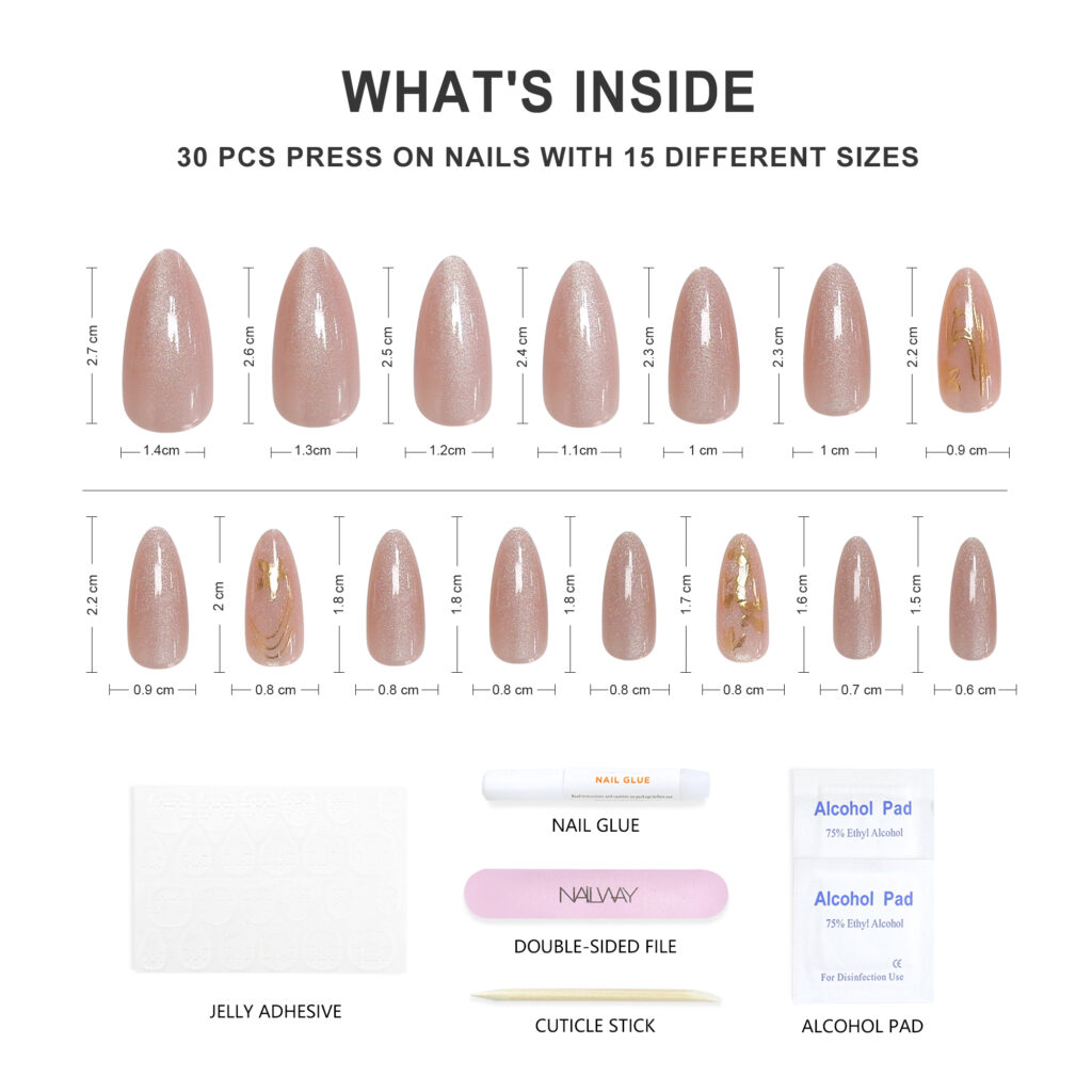 Nailway 30Pcs Nude Almond Cat Eye Soft Gel Press On Nails With Glitter