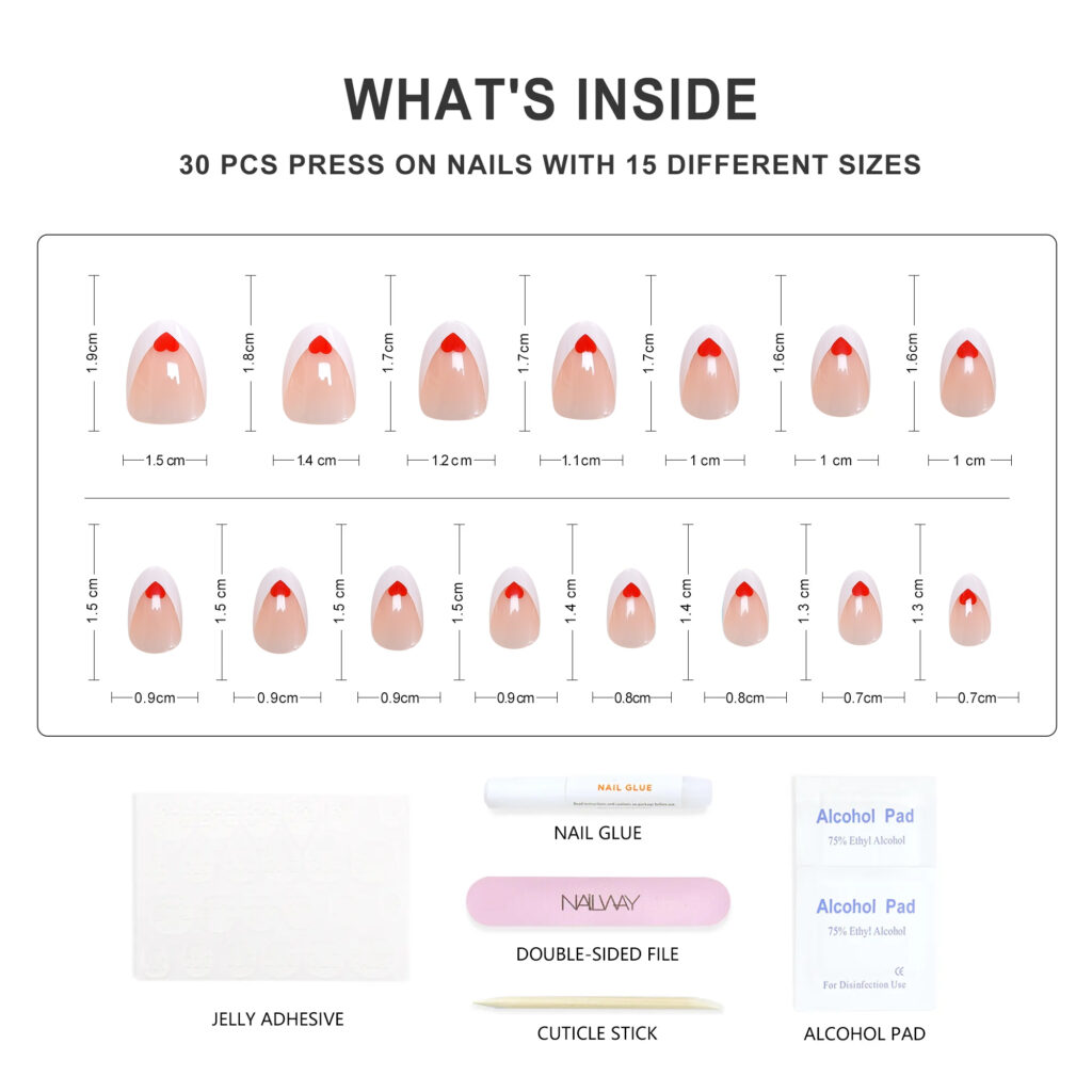 Nailway 30Pcs Oval French Soft Gel Press On Nails With Heart