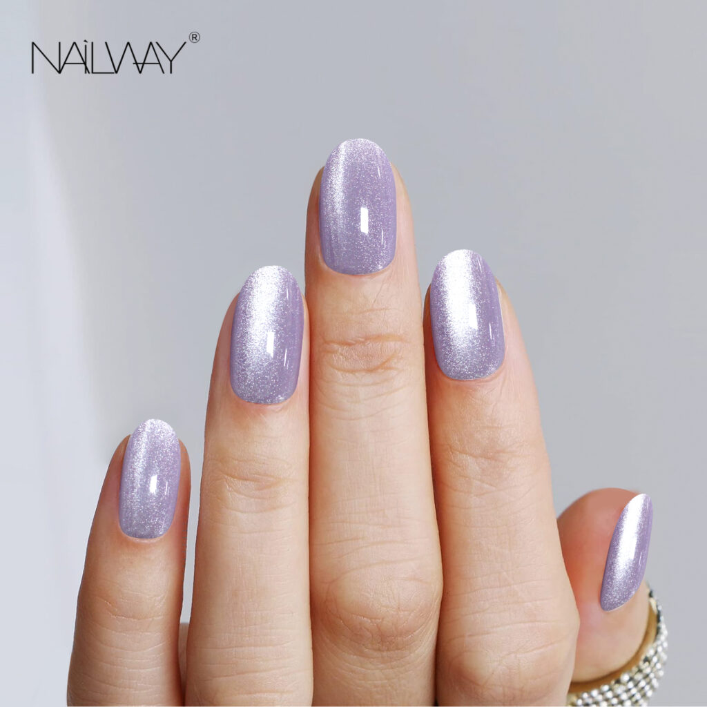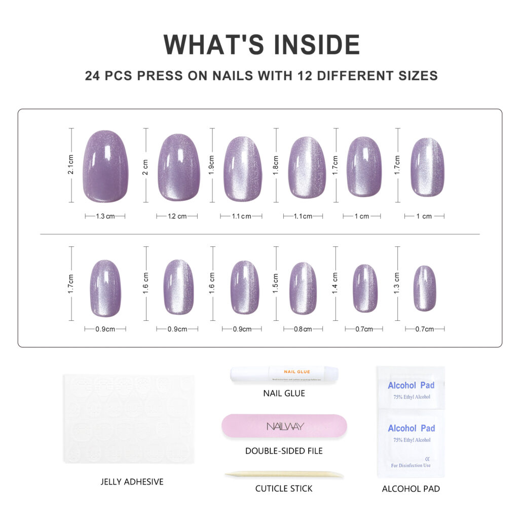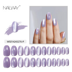 Nailway 30Pcs Short Almond Purple Color Cat Eye Soft Gel Press On Nails