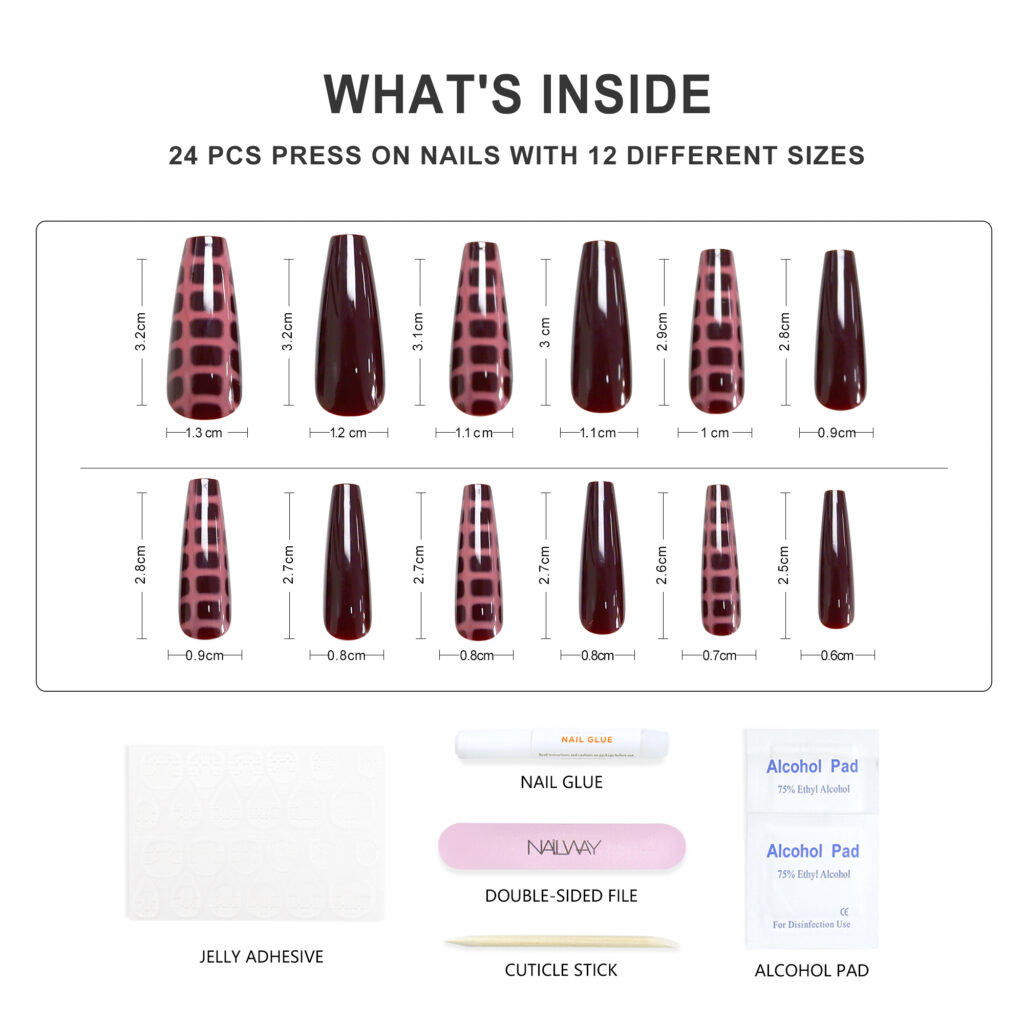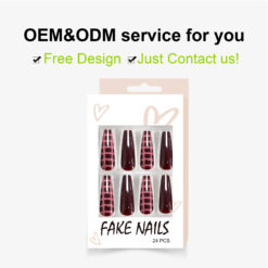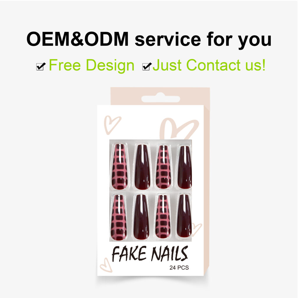 Nailway Deep Color Sweater Style 24Pcs 12Sizes Ballerina Fake Nails Press On Nails We are a professional artificial nails OEM supplier with its own factory. The company founded in 2010, located in seaside city Dalian, China. We design and manufacture artificial finger nails, toes nails, kids nails and nails stickers. Committing to provide professional customized solution for brand chain physical stores, large chain supermarket, on line sales and high-end individualized customers all over the word. Such as America, UK, Italy, France, Russia,UAE an so on. We are always making efforts to provide our clients the products in stable quality and guaranteed delivery time service. Our strong production capacity can meet large chain market’s delivery requirements for large order quantities. We warmly welcome customers to come to visit us and doing business together Q:Why Choose Us? Q:Why Choose Us? A:-Our factory has an area of more than 3000 square meters with advanced machines and great team work. Q:What Can We Offer? A:-Best OEM&ODM service,private label is welcome. Q:Can I Get Samples? A:Sure.Free samples are available but shipping cost will be paid for customers, just contact us freely.! Q: What’s The Delivery Time ? A: For customized order, 20-45 days lead time after get the deposit; Q:How About The After-sale Service? A:Please contact our professional salesmen. We will actively solve the problem for you.Description