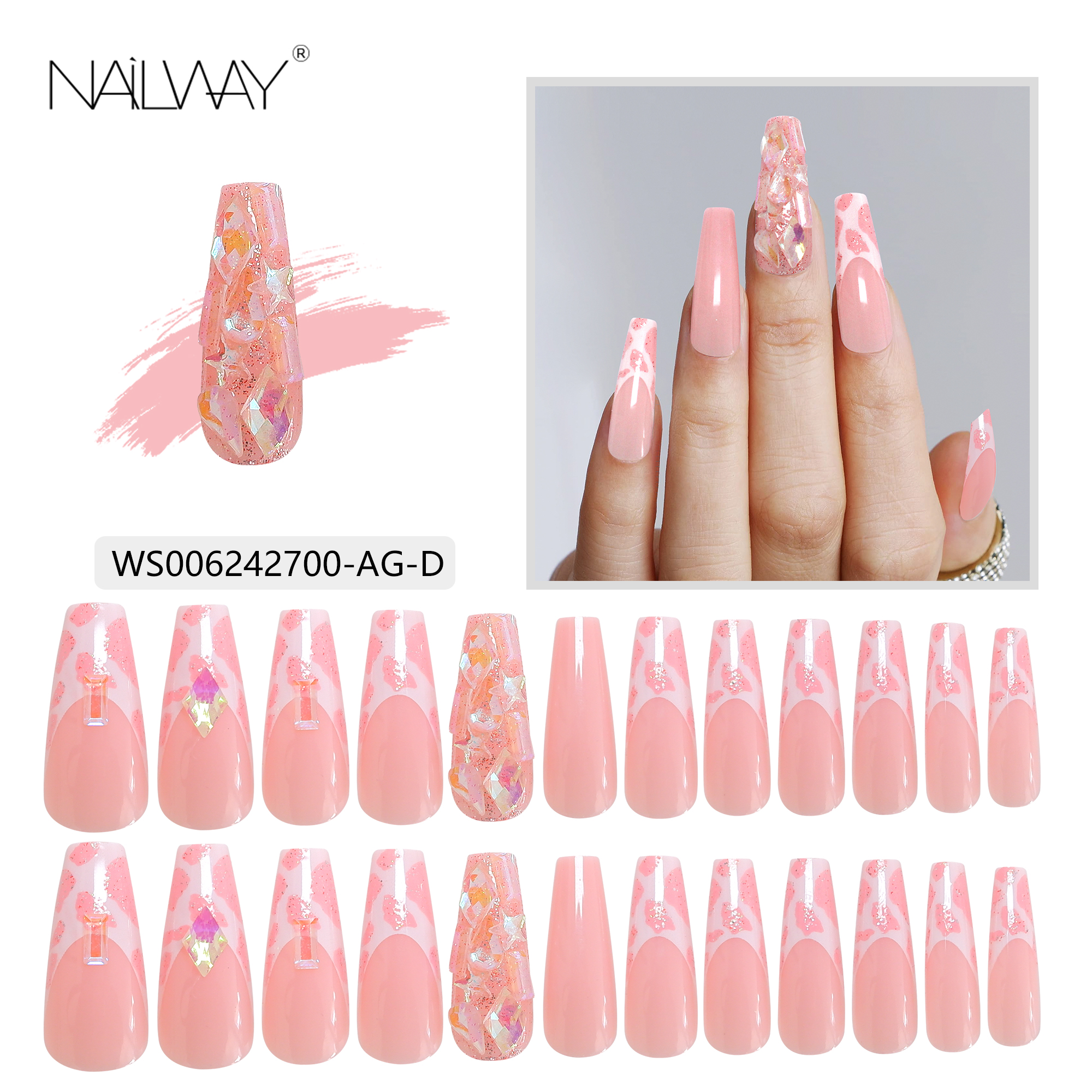Nailway Fashion Design Luxury Pink Color Diamond Design Long Coffin Fake Nails How To Use We are a professional artificial nails OEM supplier with its own factory. The company founded in 2010, located in seaside city Dalian, China. We design and manufacture artificial finger nails, toes nails, kids nails and nails stickers. Committing to provide professional customized solution for brand chain physical stores, large chain supermarket, on line sales and high-end individualized customers all over the word. Such as America, UK, Italy, France, Russia,UAE an so on. We are always making efforts to provide our clients the products in stable quality and guaranteed delivery time service. Our strong production capacity can meet large chain market’s delivery requirements for large order quantities. We warmly welcome customers to come to visit us and doing business together Q:Why Choose Us? Q:Why Choose Us? A:-Our factory has an area of more than 3000 square meters with advanced machines and great team work. Q:What Can We Offer? A:-Best OEM&ODM service,private label is welcome. Q:Can I Get Samples? A:Sure.Free samples are available but shipping cost will be paid for customers, just contact us freely.! Q: What’s The Delivery Time ? A: For customized order, 20-45 days lead time after get the deposit; Q:How About The After-sale Service? A:Please contact our professional salesmen. We will actively solve the problem for you.Description