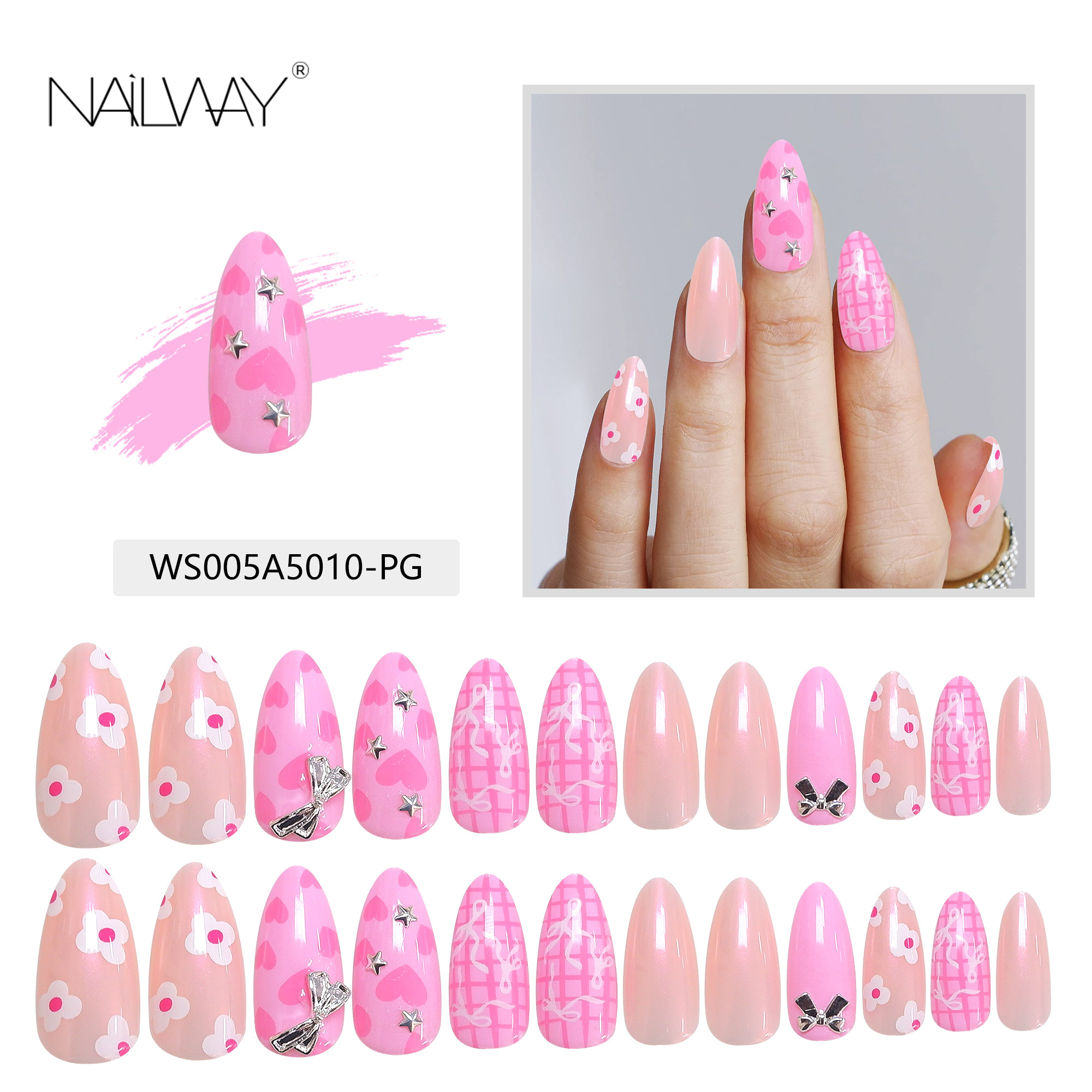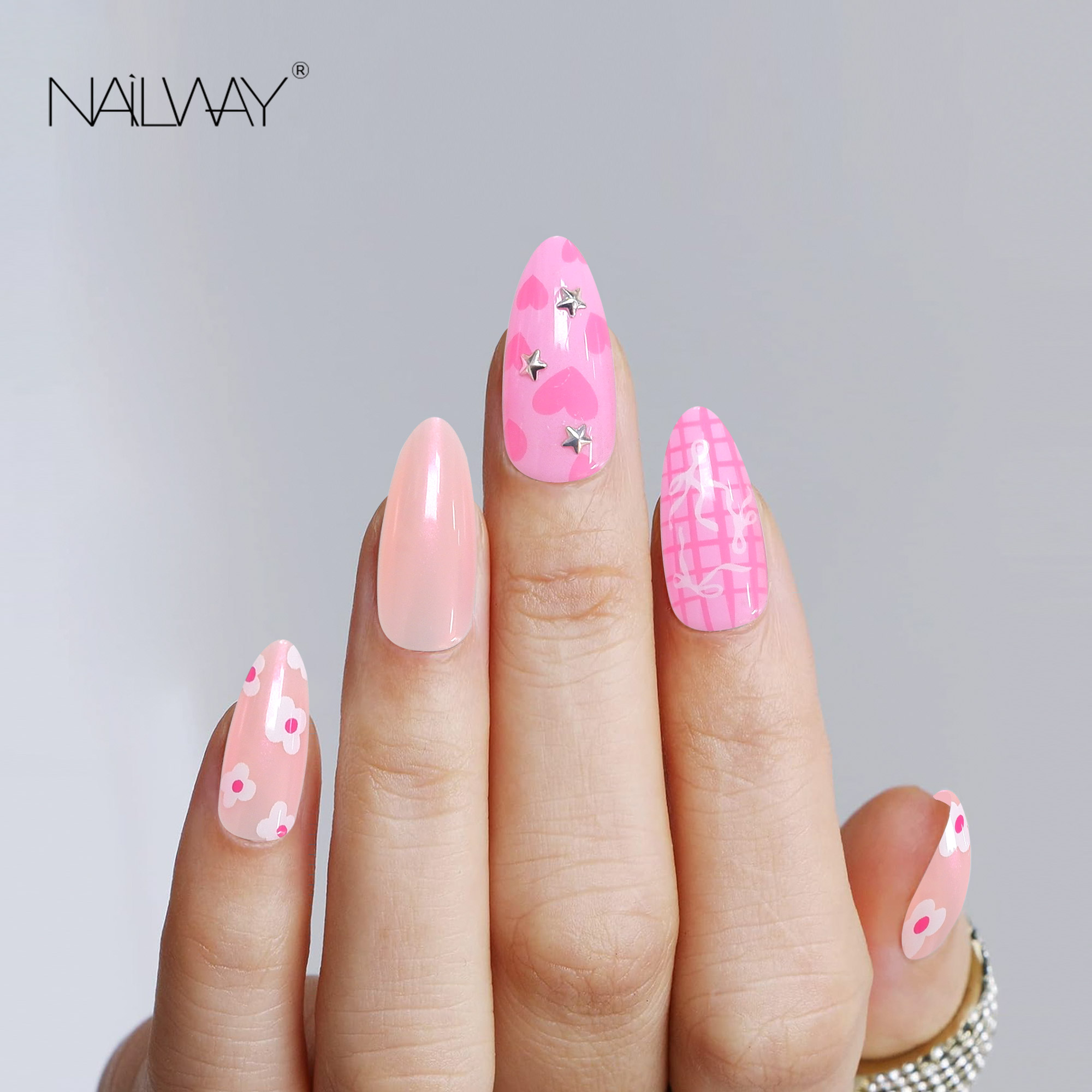 Nailway High End Barbi Pink Super Flexible Soft Gel/PMMA False Nails With Heart Design - Image 5
