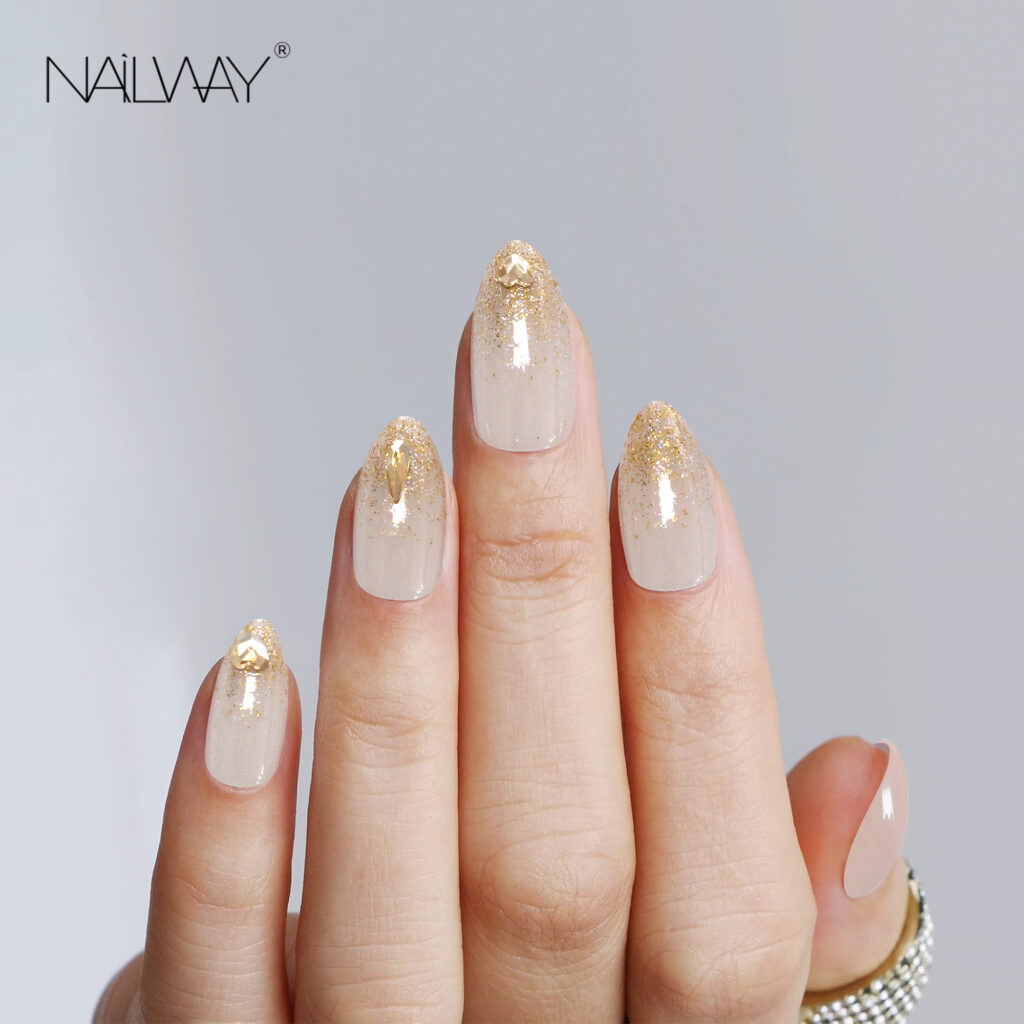 Nailway High Quality 30Pcs 15 Sizes Finger Nails Almond Press On Nails With Glitter