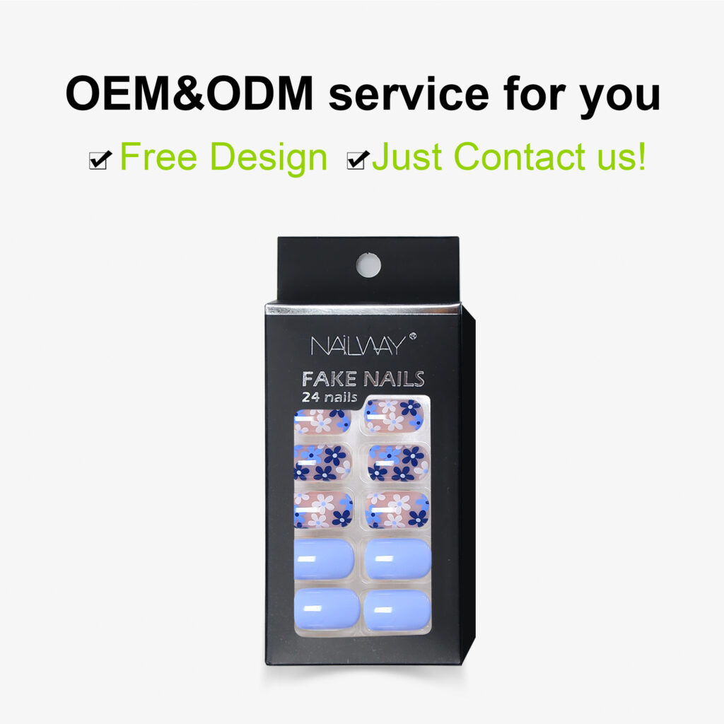 Product Name Fake Nails Product Type Square Press On Nails Material High Quality Korea ABS Material Brand Name Nailway OEM/ODM Acceptable Application Fake Nails Size 12Sizes 24Pcs Shape Short Square Package Including:24pcs nails + 24pcs glue stickers/nail glue+alcohol pad+stick+nail file. Packed by Nailway box. Delivery Time 3-20days flexible delivery time Features Salon effect, Easy to wear, Removable, Perfect size fitting, 100% No damage to real nails
