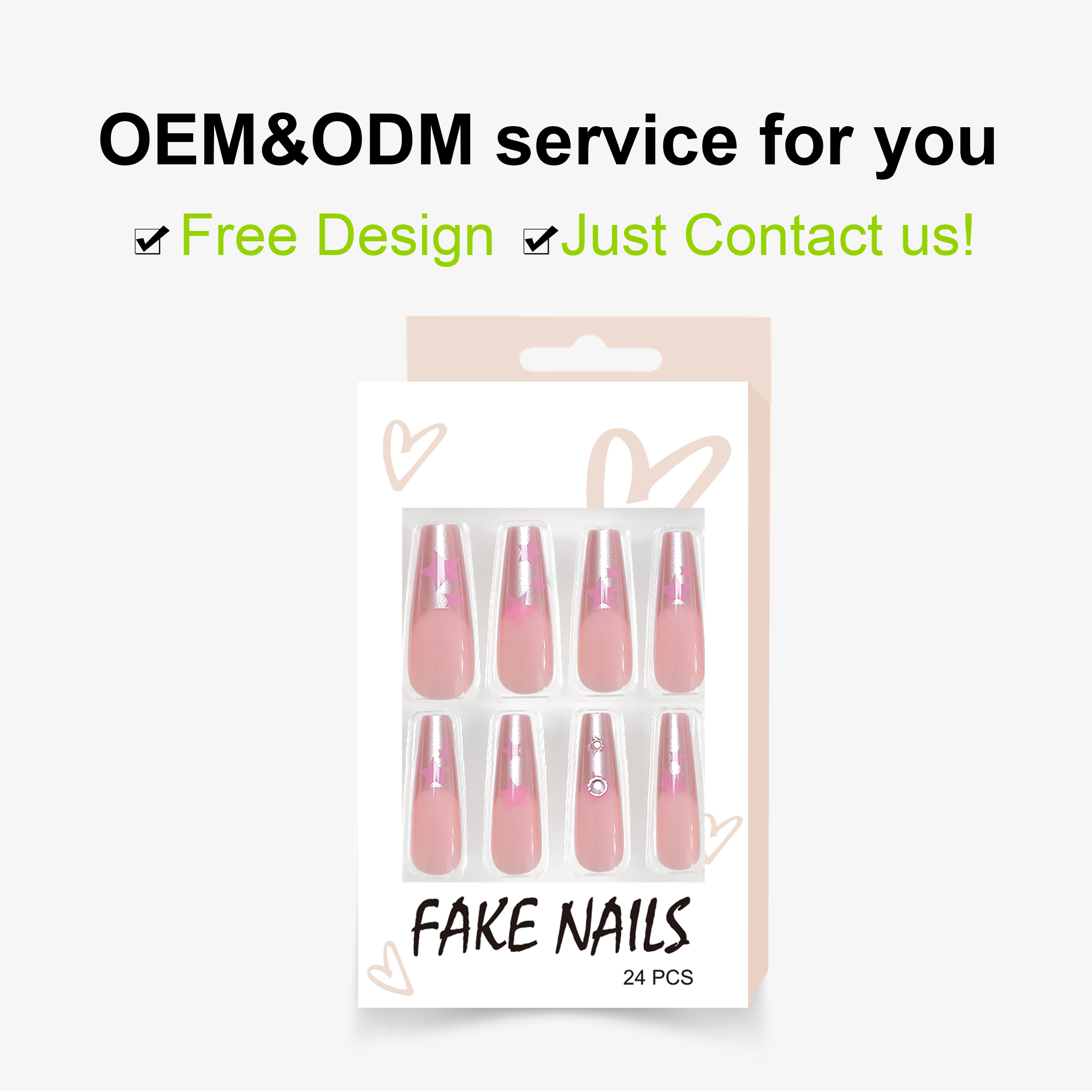 High Quality 24Pcs 12 Sizes ABS Material Ballerina Green Diamond Design French Fake Nails How To Use We are a professional artificial nails OEM supplier with its own factory. The company founded in 2010, located in seaside city Dalian, China. We design and manufacture artificial finger nails, toes nails, kids nails and nails stickers. Committing to provide professional customized solution for brand chain physical stores, large chain supermarket, on line sales and high-end individualized customers all over the word. Such as America, UK, Italy, France, Russia,UAE an so on. We are always making efforts to provide our clients the products in stable quality and guaranteed delivery time service. Our strong production capacity can meet large chain market’s delivery requirements for large order quantities. We warmly welcome customers to come to visit us and doing business together Q:Why Choose Us? Q:Why Choose Us? A:-Our factory has an area of more than 3000 square meters with advanced machines and great team work. Q:What Can We Offer? A:-Best OEM&ODM service,private label is welcome. Q:Can I Get Samples? A:Sure.Free samples are available but shipping cost will be paid for customers, just contact us freely.! Q: What’s The Delivery Time ? A: For customized order, 20-45 days lead time after get the deposit; Q:How About The After-sale Service? A:Please contact our professional salesmen. We will actively solve the problem for you.Description