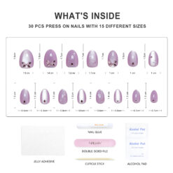 PackageIncluding: 30pcs nails + 30pcs glue stickers/nail glue+alcohol pad+stick+nail file.