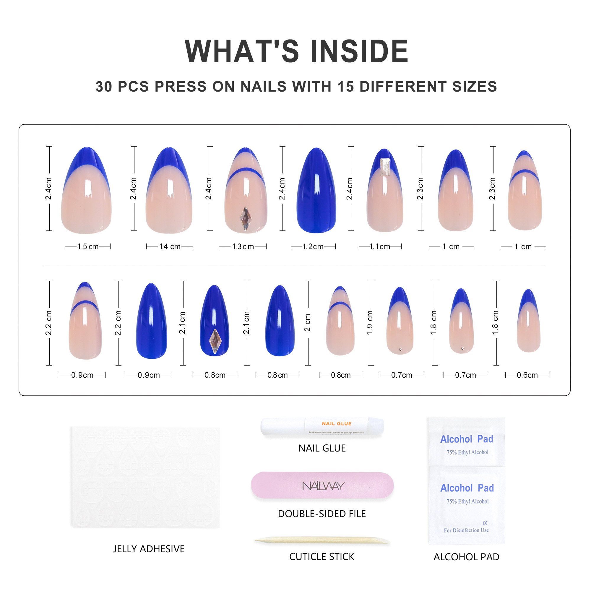 Package | Including: 30pcs nails + 30pcs glue stickers/nail glue+alcohol pad+stick+nail file. |