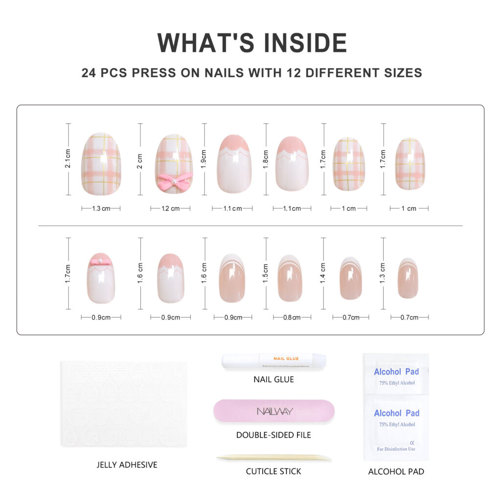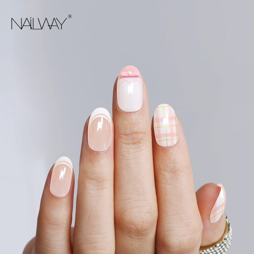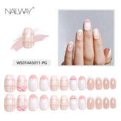 New Fashion Design 30Pcs Reusable Short Oval Pink Pattern French Soft Gel Glue On Nails