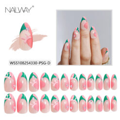 Reusable 30Pcs 15 Sizes Medium Long Stiletto Pink And Green Gel Fake Nails Artificial Nails