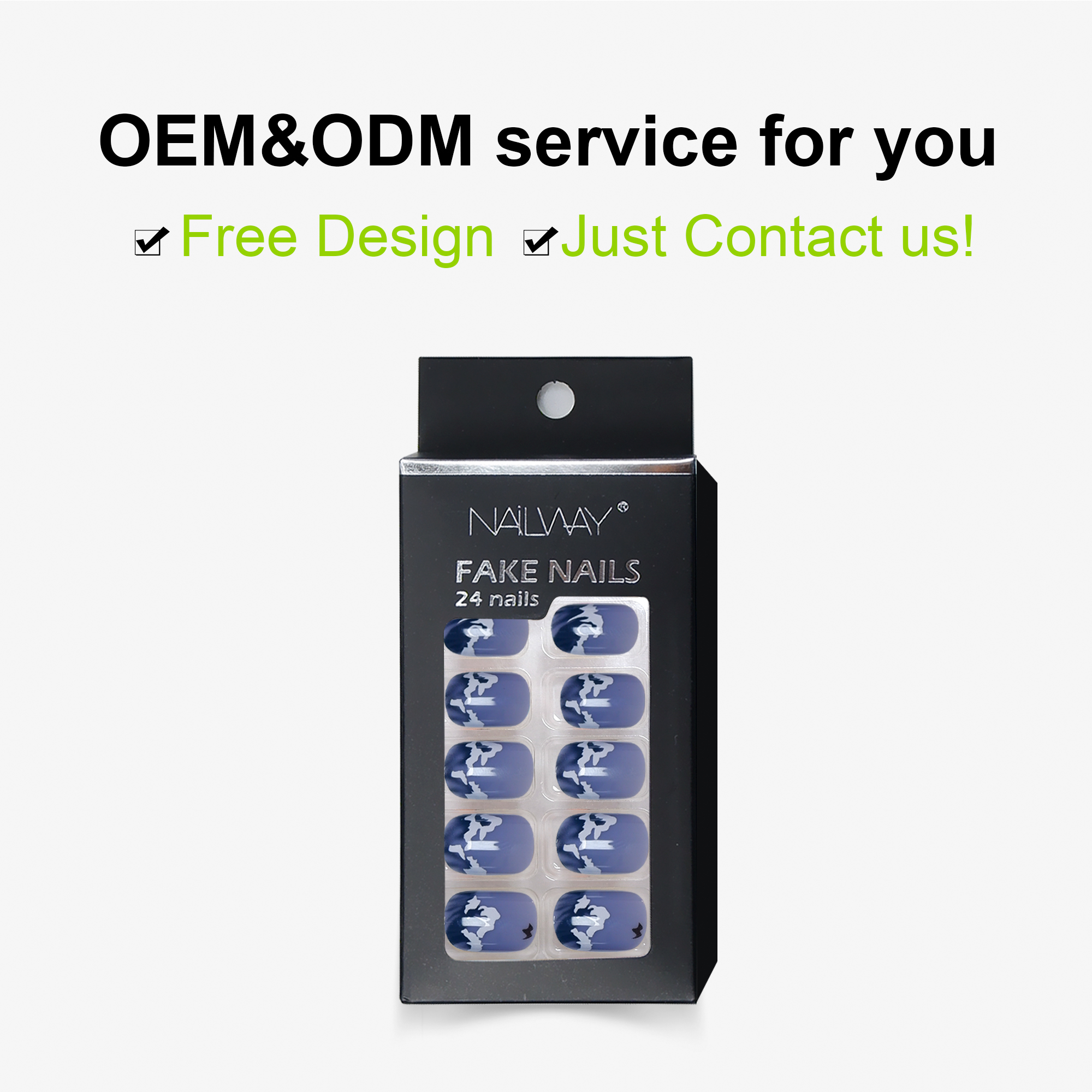 Wholesale Easy To Wear 24Pcs Finger Nails Short Square Halloween Press On Nails We are a professional artificial nails OEM supplier with its own factory. The company founded in 2010, located in seaside city Dalian, China. We design and manufacture artificial finger nails, toes nails, kids nails and nails stickers. Committing to provide professional customized solution for brand chain physical stores, large chain supermarket, on line sales and high-end individualized customers all over the word. Such as America, UK, Italy, France, Russia,UAE an so on. We are always making efforts to provide our clients the products in stable quality and guaranteed delivery time service. Our strong production capacity can meet large chain market’s delivery requirements for large order quantities. We warmly welcome customers to come to visit us and doing business together Q:Why Choose Us? Q:Why Choose Us? A:-Our factory has an area of more than 3000 square meters with advanced machines and great team work. Q:What Can We Offer? A:-Best OEM&ODM service,private label is welcome. Q:Can I Get Samples? A:Sure.Free samples are available but shipping cost will be paid for customers, just contact us freely.! Q: What’s The Delivery Time ? A: For customized order, 20-45 days lead time after get the deposit; Q:How About The After-sale Service? A:Please contact our professional salesmen. We will actively solve the problem for you.Description