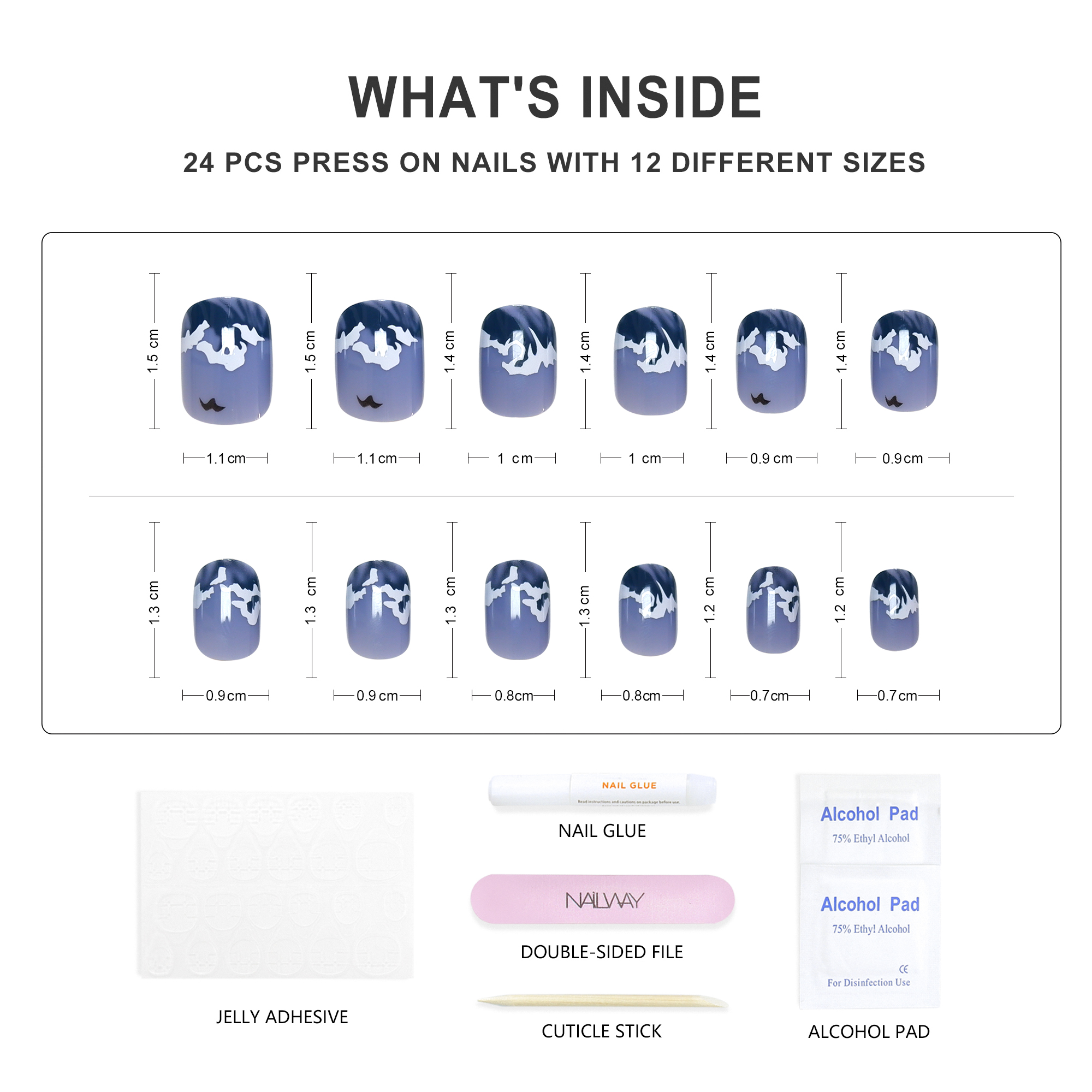 Product Name French Design Press On Nails Product Type Glossy Press On Nails Material High Quality Korea ABS Material Brand Name Nailway OEM/ODM Acceptable Application Fake Nails Size 12Sizes 24Pcs Shape Oval Package Including:24pcs nails + 24pcs glue stickers/nail glue+alcohol pad+stick+nail file. Packed by Nailway box. Delivery Time 3-20days flexible delivery time Features Salon effect, Easy to wear, Removable, Perfect size fitting, 100% No damage to real nails